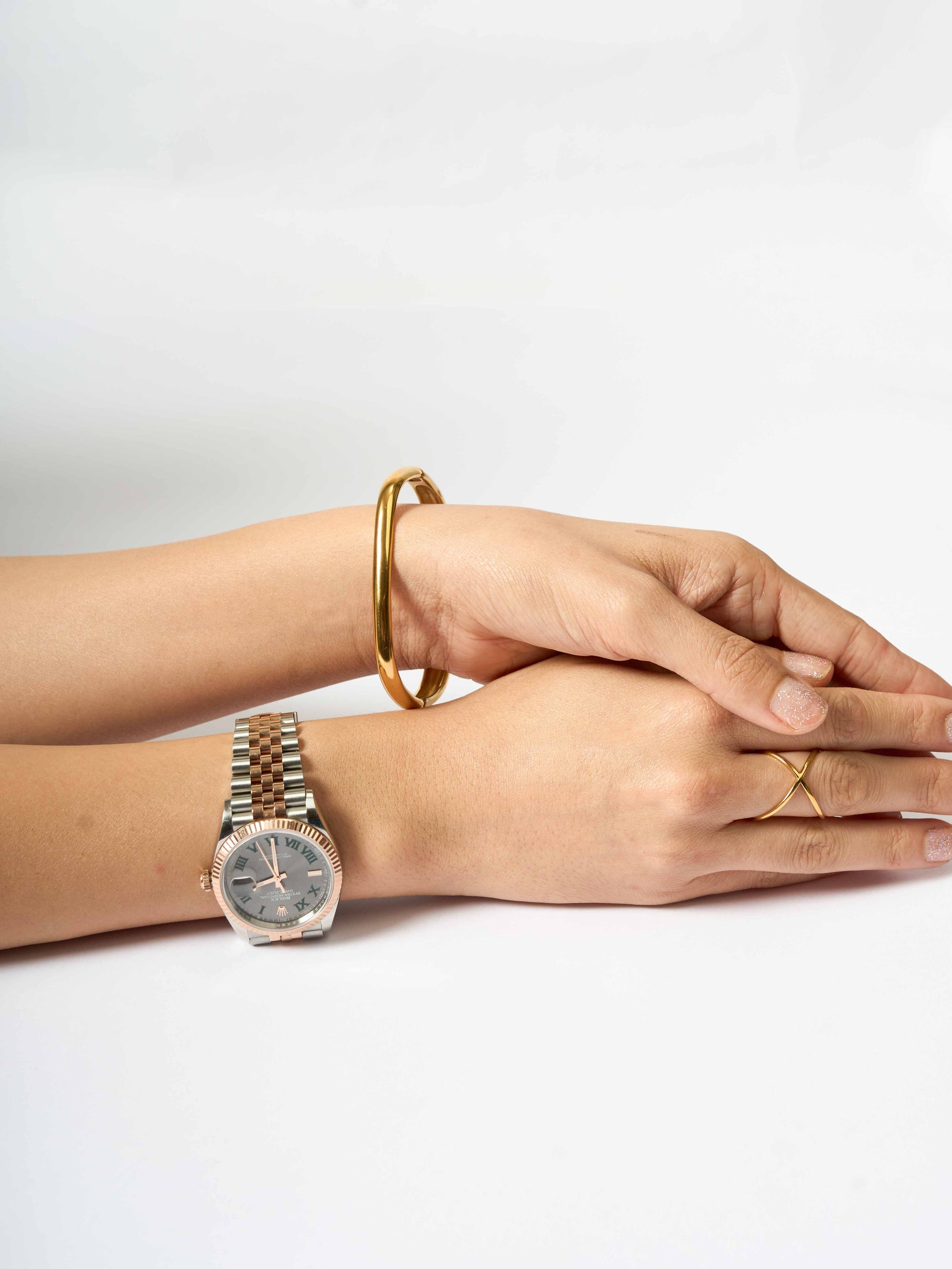 The Ayat Golden Bracelet is a timeless piece designed to add a touch of quiet elegance to your everyday style. With its smooth, polished gold finish, it feels minimal yet luxurious on the wrist. It’s perfect for daily wear or layering with other bracelets.