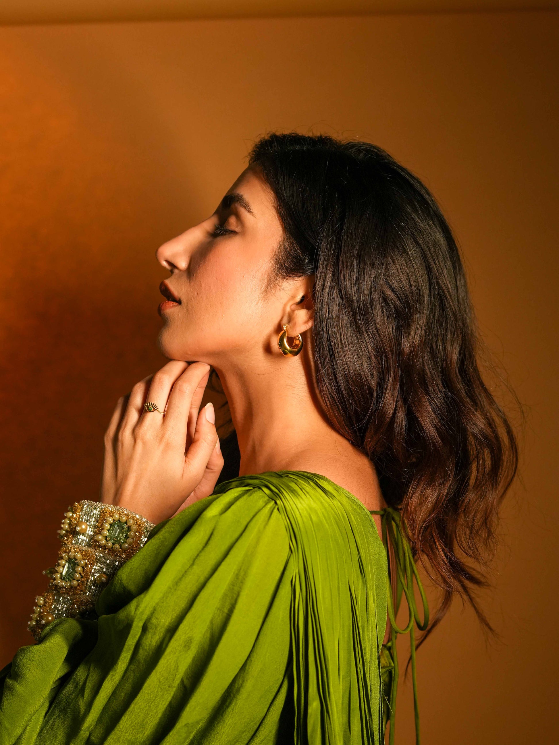 Sidra Hoops are the latest addition to Evil Eye Jewel Collection , Sidra Hoops are Iconic , Timeless & Look astonishing . These 18k yellow gold plated hoop earrings are precisely crafted with a rounded edge to bring out the striking profile. Whether worn alone or with Limited Edition Choker Necklace for an unexpected look, they make a perfect finishing touch.
