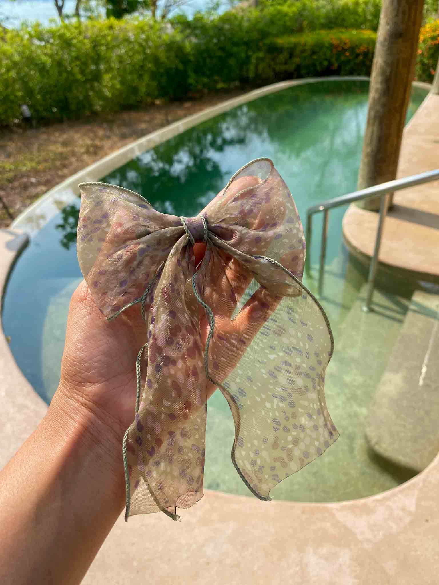The gorgeous Nish Hair organza bows are available in pastel shades of nature.